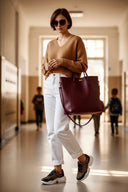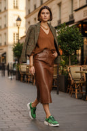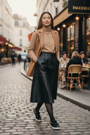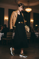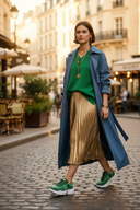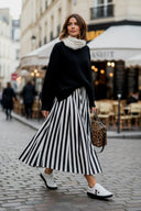 "Las zapatillas realzan la falda fluida y las capas suaves, aportando un contraste moderno y confianza que convierte la elegancia en una declaración sencilla y fácil de usar".